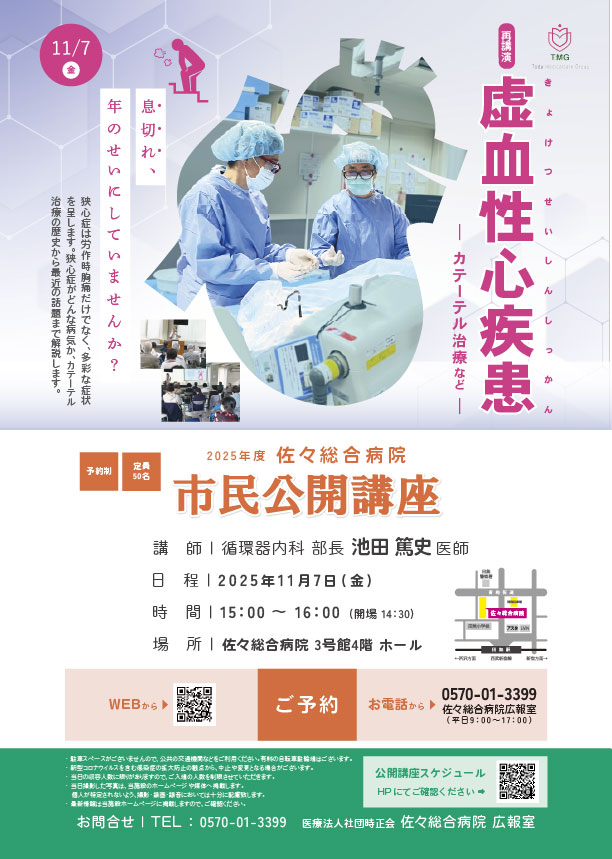 佐々総合病院は、地域のみなさまを対象に医師や医療技術者の立場から医療についてわかりやすく解説する「医療公開講座」を開催しています。この度、2025年度のスケジュールを公開致します。