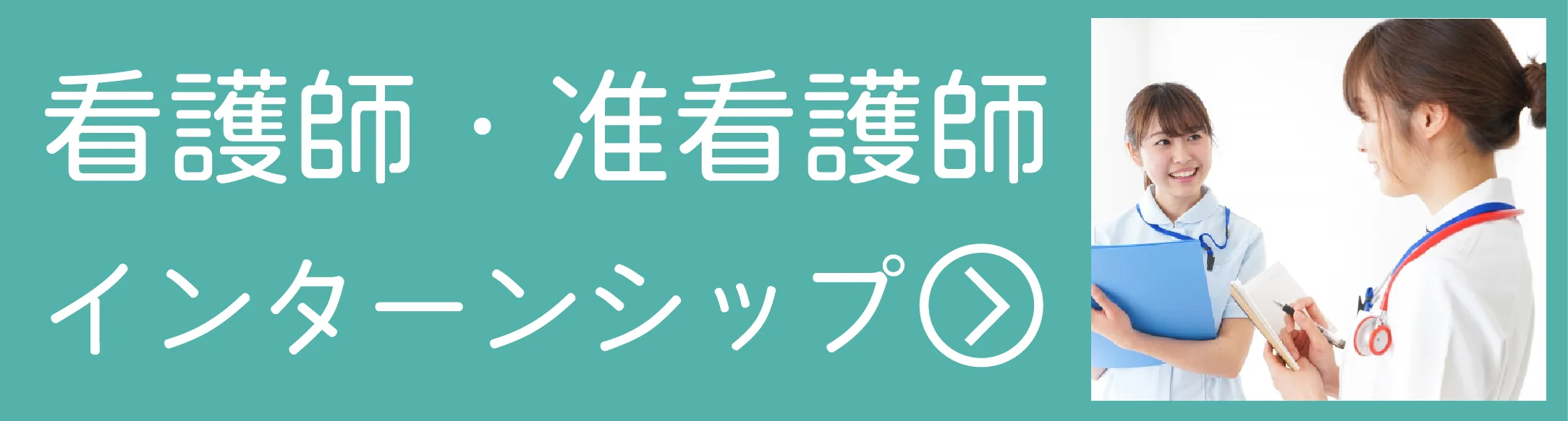 インターンシップとは就業体験のことであり、実際に病院の現場に入ることで看護師の業務や雰囲気を身近に感じることができ、将来の方向性を見出すことを目的といたします。